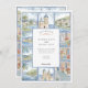 Convide seus convidados para uma comemoração romântica de destino com este único convite de casamento artístico. Inspirada pelo encanto da costa espanhola, a design apresenta uma bela fronteira de azulejos de aquarelas, cada uma representando uma cena encantadora de Sitges — da sua igreja icônica e vilas ensolaradas ao sol a palmeiras balneares e ao espumante Mar Mediterrâneo. Os detalhes do seu casamento são apresentados elegantemente no centro, usando uma sofisticada mistura de fontes clássicas de serifa e letras delicadas. Perfeito para um casamento de destino em Espanhas, um evento temático mediterrânico, ou para qualquer casal com amor por viagem e design artístico, este convite estabelece um tom verdadeiramente inesquecível e pessoal.