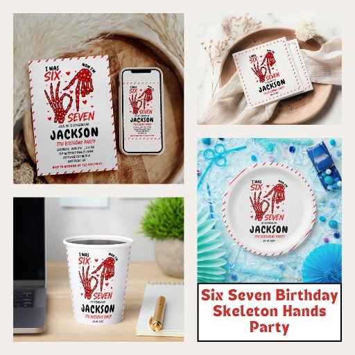 Convite Six Seven Birthday Skeleton Hands Party