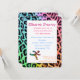 Um belo convite de aniversário multicolor perfeito para qualquer festa de patinação. Apresenta um padrão-leopardo-arco-íris na fronteira. Uma pequena skatista de impressão-leopardo-arco-íris está no canto inferior esquerdo. O texto é personalizável em cores arco-íris.
