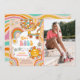 Convite Skate do cilindro do Groovy com retrato do Arco-Ír