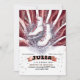 Um simples design moderno com skates de gelo de aquarela patinando um convite vermelho marrom prateado para comemoração de aniversário com a família e amigo para mulheres e meninas para amantes de skates