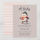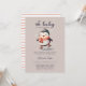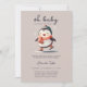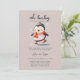Um doce, mágico, modelo de convite para chás de fraldas de menina com um tema de pinguim e esporte de inverno, com ilustração aquática de uma adorável patinação pinguim, sobre um fundo rosado empoeirado e o título "oh bebê está frio lá fora". Simples e elegante, para uma mãe (ou pais) ser quem ama pinguins e celebra seu chá de fraldas nos meses de inverno.