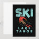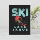 Gráfico de esqui que diz: Lago Ski Tahoe. Design de esqui engraçado para as próximas férias de esqui nas montanhas no inverno.