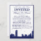 Uma abordagem muito moderna e caprichosa para o seu evento de gala! O skyline de Boston personaliza o convite perfeito para a festa. Mais skylines em breve! Cartões de RSVP combinantes disponíveis. Fundo branco com azul escuro/naval