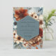 A dramatic and artistic mood is created by the striking contrast of rich auburn and deep rust tones against a moody slate blue background. This painterly arrangement features beautifully rendered anemone blossoms in warm, earthy hues, complemented by delicate cream and blue florals for a sophisticated aesthetic.