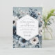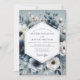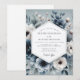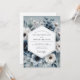 A serene composition unfolds with delicate blooms in shades of slate blue and soft ivory. Whispers of muted green foliage weave through the ethereal floral arrangement, creating a tranquil and romantic mood. This design evokes a sense of gentle elegance, perfect for a sophisticated union.