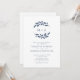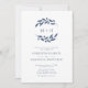 Slate Blue Olive Branch Monograma Wreath Invitation... Nosso convite de casamento de dois lados apresenta uma coroa azul de slate monograma de ramos de oliveira em um fundo branco nítido seguido de convite em serif elegante e tipografia sans serif. Salve o papel, incluindo o código QR do seu site de casamento no verso do convite, permitindo que seus convidados RSVP online e vejam todos os detalhes normalmente enviados em cartões separados no pacote de casamento. O exemplo de código QR do site de casamento e o texto do convite podem ser facilmente revisados com seus próprios detalhes usando o modelo de personalização.
