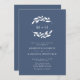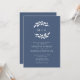 Slate Blue Olive Branch Monograma Wreath Invitation... Nosso convite de casamento de dois lados apresenta uma coroa branca de monograma de silhueta de ramos de oliveira em um fundo azul de slate chic seguido de texto de convite em serif elegante e tipografia sans serif. Salve o papel, incluindo o código QR do seu site de casamento no verso do convite, permitindo que seus convidados RSVP online e vejam todos os detalhes normalmente enviados em cartões separados no pacote de casamento. O exemplo de código QR do site de casamento e o texto do convite podem ser facilmente revisados com seus próprios detalhes usando o modelo de personalização.