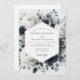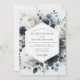 This elegant design features a romantic arrangement of slate blue and soft white florals. Painterly roses in cream and white are beautifully contrasted by moody, deep blue blossoms. Subtle hints of sage green foliage complete this sophisticated and artistic composition for a timeless event.