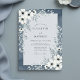 This design features delicate white blossoms with charcoal-hued foliage, creating a painterly, ethereal aesthetic. The deep slate blue wash provides a moody backdrop, evoking a sense of romance and sophisticated charm for a memorable occasion.