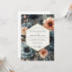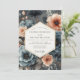 Embrace a mood of lyrical romance with this stunning artistic floral composition. Beautiful anemones in deep slate blue and delicate blossoms in soft peach bloom against a dramatic charcoal background. The painterly watercolor effect adds a layer of sophisticated artistry. This design is perfect for an elegant, moody, and romantic union.
