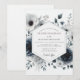 Elegance and drama converge in this exquisite artistic design. A moody palette of slate blue, deep indigo, and charcoal grey creates a sophisticated atmosphere. Painterly white anemones, dark roses, and delicate botanical sprigs are beautifully rendered in a soft watercolor style. This arrangement is perfect for a romantic, modern, or winter-themed union.