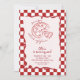 If you looking for a elegant and easily edited unique 1st birthday invitation, this one is perfect for you. As you see, it features red magenta hand written script with whimsical slice of fun on white background. And Italian red hand drawn pizza slice and and a red frame. With whole info that can be customized easily by clicking on the personalize button.