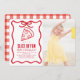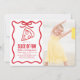 This cute "a slice of fun" kid's birthday photo invitation features hand-drawn illustrations of a bow and slice of pizza surrounded by a red wavy frame. The reverse side features a white background with a red gingham plaid. Personalize it for your needs. You can find matching products at my store.