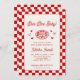 Slice Slice Baby Shower Invitation: Italian inspired and checkered red and white for this cute baby shower invite. This retro design is perfect for a pizza themed party and a fun celebration.
