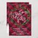 Convite Snowy Winter Red Floral Wreath Flannel Natal