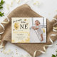 Make your little one’s milestone even sweeter with this “It’s So Sweet to Bee One” photo invitation. This charming first birthday design features soft buttercream yellow tones with hand-painted watercolor bees, honeycomb accents, and a sweet beehive illustration, all framed in a crisp white border for a modern, polished look. The cheerful yellow and black lettering gives it a playful, gender neutral style perfect for baby girls or boys.