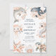 Um belo convite de aniversário apresenta um golfinho, uma baleia, uma água-viva, um cavalo marinho, uma estrela-do-mar e uma tartaruga com arranjos florais cor-de-rosa. Perfeito para uma festa de aniversário. As palavras podem ser alteradas para se adequarem aos seus próprios detalhes ou requisitos