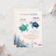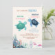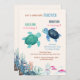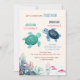 Convite de aniversário conjunto de tartarugas bonitas, com duas tartarugas adoráveis sob o mar com criaturas oceânicas. Perfeito para o aniversário em comum, aniversário de irmãos, aniversário de gêmeos, bem como aniversário de moça ou menino. Itens correspondentes disponíveis no repositório!