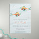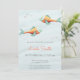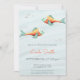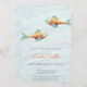 Bonito sob o convite do chá de fraldas marinho com dois peixes de fundo azul macio. Excelente para chás de fraldas gêmeos. Ilustrada e projetada por Patricia Alvarez.