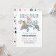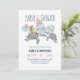 Sob o tema Mar, o convite para chás de fraldas apresenta uma mãe e tartaruga-do-mar bonitinha com balões, chapéu festivo e um presente. Perfeito para celebrações temáticas náuticas, costeiras e de praia. As cores do verão do azul de praia, do coral, do marinho e do amarelo ensolarado são excelentes para uma menina ou um menino. O lado inverso é um padrão de bolinhas em cores de coordenação. Mostrado aqui como um convite ao chá, mas pode ser facilmente personalizado com o primeiro e sobrenome da futura mãe. Arte por KL Stock