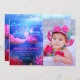 Este convite usa azul e rosa como paleta de cores principal. A profundidade no design é dada atenção fazendo com que os peixes pareçam muito distantes do ponto de vista focal principal. Efeitos de iluminação são usados especialmente na cauda da sereia, para torná-la a estrela do design