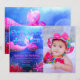 Este convite usa azul e rosa como paleta de cores principal. A profundidade no design recebe atenção fazendo com que os peixes pareçam muito distantes do ponto de vista focal principal. Efeitos de iluminação são usados especialmente na cauda da sereia, para torná-la a estrela do design