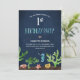 Este convite de festas náutico tem um tema "Embaixo do Mar" galopante, com cascas de aquarelas, estrelas-do-mar, algas marinhas e um fundo azul-marinho bonito e texturizado.