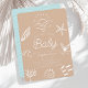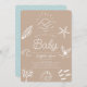 Este convite para chás de fraldas bonitinho 'Sea You Soon Baby', neutro em termos de gênero, apresenta um fundo de café au lait/marrom/tan com luz solar desenhada à mão sobre ondas, uma cauda de baleia, uma escola de peixes, conchas, corais e estrelas-do-mar — tudo em branco. O verso apresenta um fundo azul-turquesa claro com padrões de onda. Personalize-o para as suas necessidades. Você pode encontrar produtos correspondentes na minha loja.