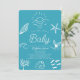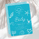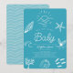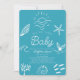 Este belo convite de chá de fraldas do garoto 'Sea You Soon Baby' apresenta um fundo azul-turquesa com luz solar desenhada à mão sobre ondas, uma escola de peixes, uma cauda de baleia, conchas, corais e estrelas-do-mar — tudo em branco. O verso apresenta um fundo azul-turquesa claro com padrões de onda. Personalize-o para as suas necessidades. Você pode encontrar produtos correspondentes na minha loja.