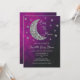 Sobre o chá de fraldas da lua com lua de prata e estrelas contra um fundo negro e rosa do céu noturno roxo