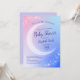 Pastel macio Sobre a Lua Bebê Chamas apresentam uma bela lua crescente, estrelas e um gradiente rosa, azul e roxo que é macio e bonito.