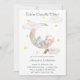 As cores pastéis macios e detalhes intrincados do trabalho de arte de aquarela neste convite a chás de fraldas criam uma atmosfera quente e convidativa, perfeita para celebrar essa ocasião especial. O texto "Estamos sobre a lua" acrescenta um toque de brincadeira e enfatiza o entusiasmo e a felicidade em torno da chegada que se avizinha.