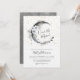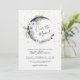Sobre o convite para Chás de fraldas da Lua. Celebrar um momento mágico com esse tema de chá de fraldas celestial de vô caprichoso. "Sobre a Lua!" é exibido com destaque dentro de uma lua crescente sobre um fundo todo branco. Se você optar por personalizar a cor de fundo, ela terá um efeito gradiente da cor escolhida para baixo para branco na parte inferior. Um olhar elegante, porém brincalhão, com uma lua e estrelas da meia-noite, estrelas do céu, estrelas douradas, flores brancas, penas e outros sotaques que dão um pouco de vibração boêmica. O dorso apresenta uma cor d'água escura e estrelada. A design apresenta coloração em preto, branco, ouro e cinza no seu conjunto. O texto é apresentado em uma mistura elegante de tipografia de script preto e uma letra serif. Este convite é perfeito para celebrar a futura mãe e acrescenta um toque místico ao seu dia especial. Embora seja ideal para um bebê, sua design é versátil o suficiente para ser neutro em relação ao gênero. Uma Simples Na moda Elegante Aquarela Sobre O Convite Para Chá de fraldas Da Lua. Disponível como um convite impresso ou como um convite digital para download que você pode enviar por e-mail ou que foi impresso localmente!