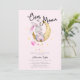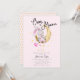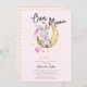Um doce convite de chá de fraldas de menina com um tema sobre a lua, lua e estrelas, apresentando uma menina de coelho fofa sentada num celular da lua e um coração rosa. O título "Sobre a Lua" está na caligrafia moderna da escrita.