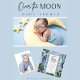 Querido, estamos na Lua! chá de fraldas convite com ursos peludos em nuvens azuis e cercados por estrelas e nuvens com rostos doces. Esta design foi feita em aquarelas moles e é perfeita para o seu chá de fraldas de bebês.