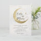Convite sobre o Chá de fraldas da Lua - Lua Celestial e Estrelas Design de Aquarela Comemora sua chegada em estilo sonhador com este convite para o chá de fraldas "Sobre a Lua". Com uma delicada cor d'água, pintada à mão, a lua móvel e as estrelas cintilantes sobre um fundo branco macio, este design vê efeitos de ouro digital de alta qualidade na lua e nas estrelas - sem folha de papel, apenas um vidro digital. Ideal para os pais procurarem por convites para chuveiros de bebês, convites para chás de fraldas de galáxia, ou eu te amo para os motivos da Lua e Volta. Este convite à lua neutra em termos de gênero também complementa os temas das Pequenas Estrelas do Twinkle Twinkle ou dos bebês espaciais, perfeitos para bebês, meninas ou comemorações de aspersão. Este convite elegante e moderno é totalmente personalizável — edite texto, fontes, cores e texto para corresponder à sua celebração exclusiva. Quer você esteja planejando uma versão imprimível, um cartão digital ou um download de alta resolução, ele parece impressionante em fotos e impressões lindamente em estoque de cartão premium.