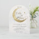 Convite sobre o Chá de fraldas da Lua - Lua Celestial e Estrelas Design de Aquarela Comemora sua chegada em estilo sonhador com este convite para chá de fraldas de arca "Sobre a Lua". Com uma delicada cor d'água, pintada à mão, a lua móvel e as estrelas cintilantes sobre um fundo branco macio, este design vê efeitos de ouro digital de alta qualidade na lua e nas estrelas - sem folha de papel, apenas um vidro digital. Ideal para os pais procurarem por convites para chuveiros de bebês, convites para chás de fraldas de galáxia, ou eu te amo para os motivos da Lua e Volta. Este convite à lua neutra em termos de gênero também complementa os temas das Pequenas Estrelas do Twinkle Twinkle ou dos bebês espaciais, perfeitos para bebês, meninas ou comemorações de aspersão. Este convite elegante e moderno é totalmente personalizável — edite texto, fontes, cores e texto para corresponder à sua celebração exclusiva. Quer você esteja planejando uma versão imprimível, um cartão digital ou um download de alta resolução, ele parece impressionante em fotos e impressões lindamente em estoque de cartão premium.