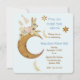 Eles estão sobre a Lua. Um coelho fofo sentado na lua anunciando o chá de um bebê. O verso e a frente do convite é um pano de fundo do mesmo padrão