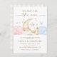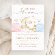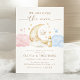 Celebre a alegria de sua chegada com este convite revelador encantador do gênero "Sobre a Lua"! Apresentando uma lua crescente encantadora abraçando uma estrela sorridente, cercada por estrelas ouros, nuvens sonhentas e azuis, e uma doce garrafa de bebê, esta design combina elegância e elegância perfeitamente. Os tons quentes e neutros e a delicada tipografia da escrita criam um tema celeste eterno, ideal para sua revelação mágica. Personalize facilmente com seus detalhes de eventos e prepare-se para receber um revelador inesquecível "ele ou ela" sob as estrelas!