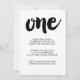 Trendy, pintada com a escrita cursiva número um da cobertura de letras da tipografia negra. Coloque o gráfico número um em uma fotografia personalizada do seu filho ou filha de um ano de idade 'em breve'. Adicione facilmente a sua própria fotografia do bebê carregando a sua própria imagem/fotografia clicando apenas na pequena miniatura de exemplo acima à direita. Clique no botão Personalizar para editar o texto/posicionamento da sua foto, etc. Cada convite vem com um envelope branco de tamanho correspondente, incluído no custo do barato.