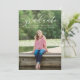 Convide convidados para comemorar o formando com nossos convites de festa de formatura de Sobreposição de Script Elegante de tendências. A frente dos convites mínimos para festas de formatura exibe a foto favorita do formando com "formando" em branco e o nome do formando, escola e ano de graduação abaixo. A parte de trás dos convites apresenta "comemorar o formando!" com os detalhes de sua festa mostrados abaixo em texto preto sobre um fundo cor-de-rosa pincelado.