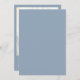 Aumente seu convite para casamento vellum ou acrílico ou salve as sobreposições de data com nosso estoque de cartão de fundo versátil. Apresentando uma frente azul limpa e empoeirada para designs de sobreposição intrincadas perfeitamente apresentadas. No verso, carregue sua foto e insira seu endereço no site do casamento para criar um código QR para seus convidados digitalizarem para RSVP on-line e obter detalhes adicionais de casamento, como acomodações.