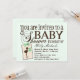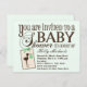Um convite sofisticado para chás de fraldas com um fundo verde muito claro e um texto marrom. Armazene design com arco verde e empacotamento embaixo à esquerda. Personalize o texto com detalhes da sua ocasião.