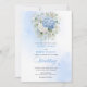 Set the tone for a stylish and unforgettable celebration with this watercolor blue and gold wedding invitation, designed around today’s most trendy wedding color palette. Featuring soft pastel, powder, light, and pale blue hydrangeas, paired with fresh eucalyptus greenery and elegant gold floral accents, this design captures modern romance with timeless appeal.