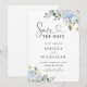 Convite Soft Blue Botanical Wedding Save The Date