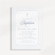 Light blue gray striped baptism invitation with classic cross and traditional framed layout. This simple and elegant baptism invitation is suitable for a baby boy christening, baptism ceremony, or religious celebration. The timeless striped design works for modern, traditional, and minimalist baptism themes. Ideal for parents looking for a clean and classic baptism invitation for their son.
