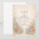 This romantic wedding design features soft blue and peach florals arranged in a delicate garden composition. Inspired by wildflowers and classic botanical illustrations, the artwork blends muted neutrals with airy florals for a timeless, refined look. The elegant layout and gentle color palette make it ideal for couples planning a nature-inspired wedding with a graceful, understated aesthetic that feels both modern and enduring.