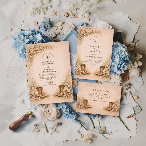 Convite Soft Blush Western Boots Wedding