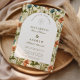 A sophisticated botanical design featuring rich green foliage and soft ivory blooms, framed within a timeless arched layout. The deep, nature-inspired tones bring a sense of depth and refinement, while the clean typography keeps the overall look elevated and effortless.